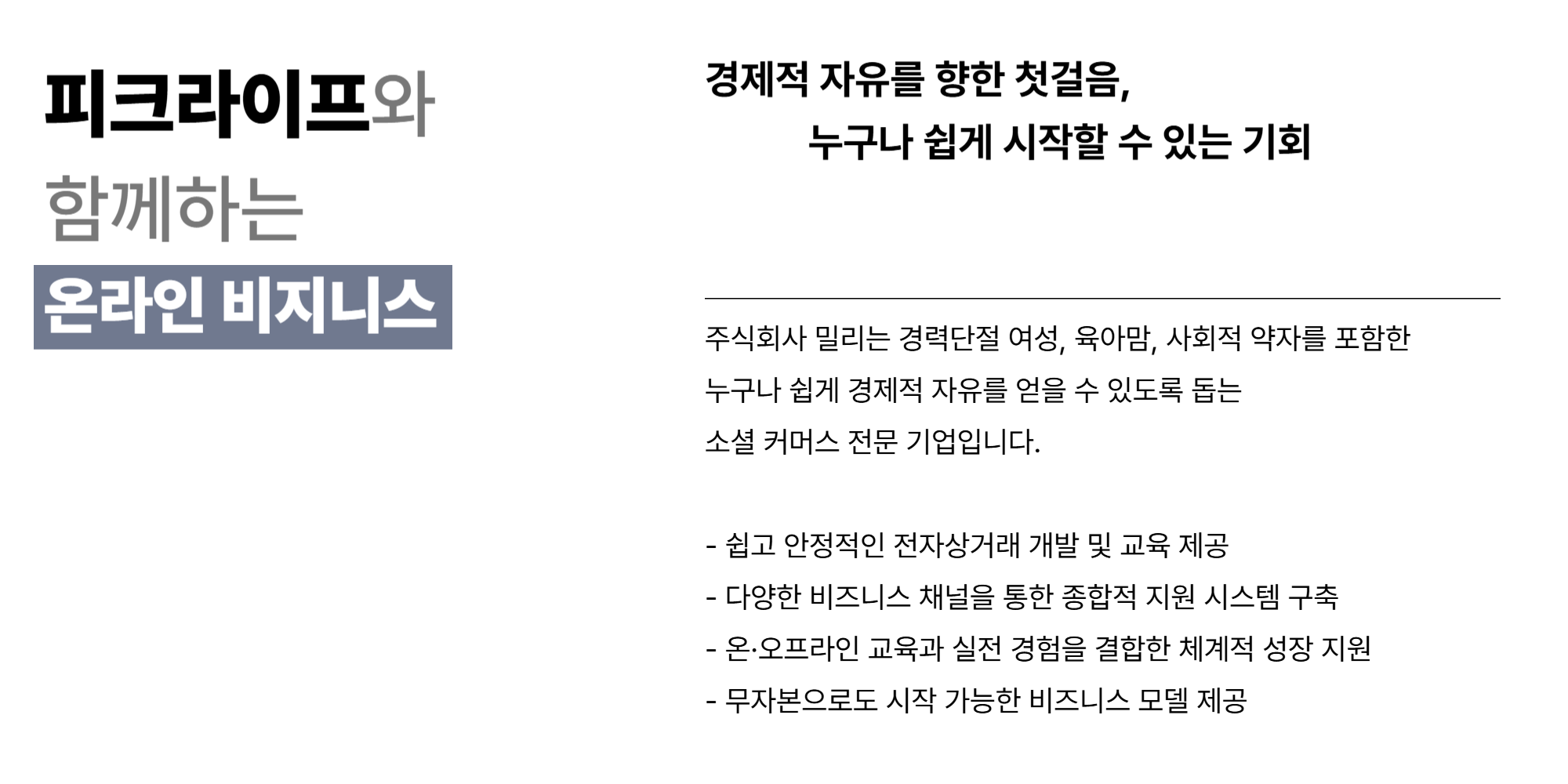 피크 라이프는 (주)Mily의 라이프코칭&창업컨설팅 플랫 폼입니다.